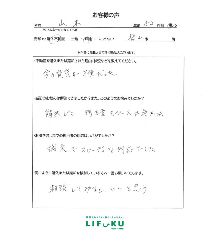 LIFUKU福山売買センターの野島です。